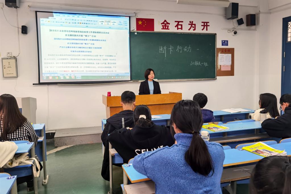 各二级学院通过班会课、课前集中教育等形式,向同学们详细的介绍了“两卡”买卖以及出租、出售、出借“两卡”的严重危害。要求同学们如有发现非法开办贩卖电话卡、银行卡违法犯罪、电信网络诈骗犯罪等情况坚决举报,为维护社会治安大局稳定贡献自己的一份力量。