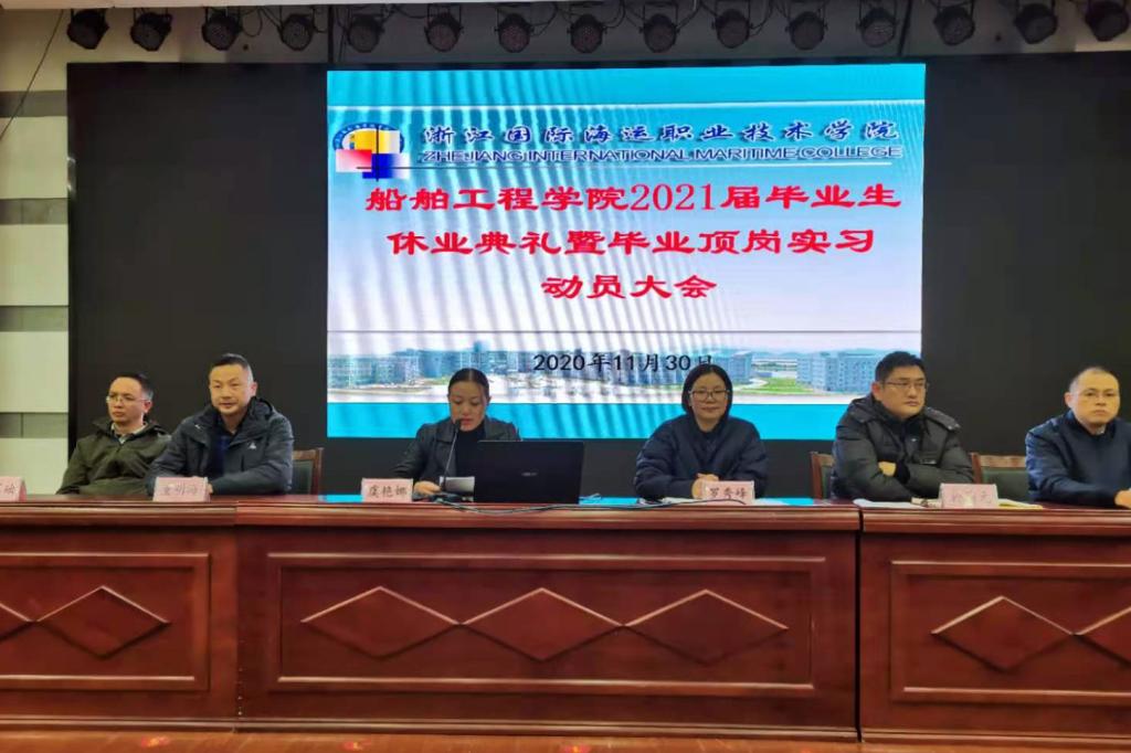 船舶工程学院副院长虞艳娜重点围绕毕业顶岗实习的意义、实习安排、实习安全及纪律要求、实习管理平台填报、实习考核等相关事宜作了动员。学院副书记於国元就毕业生违纪、操行审核情况、实习安全及疫情防控、文明离校等作了要求。