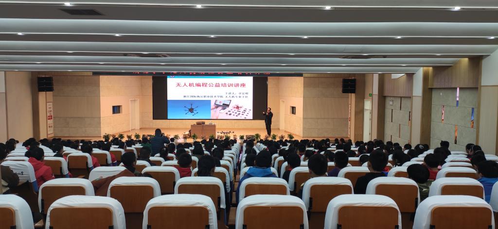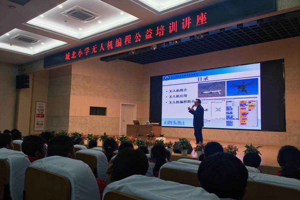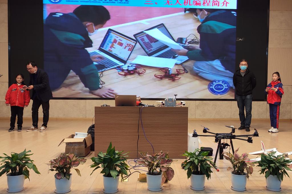 12月9日,应普陀城北小学邀请,船舶工程学院卓宏明等4名教师赴普陀城北小学为320余名师生开展了无人机编程公益培训讲座。