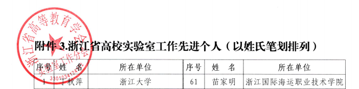 日前,浙江省高等教育学会实验室工作分会发布了《关于公布2019-2020年度浙江省高校实验室工作先进的通知》,对全省各高校在实验室管理等方面涌现出的先进集体和个人进行表彰。我校船舶工程学院苗家明老师喜获“浙江省2019-2020年度高校实验室工作先进个人”称号。