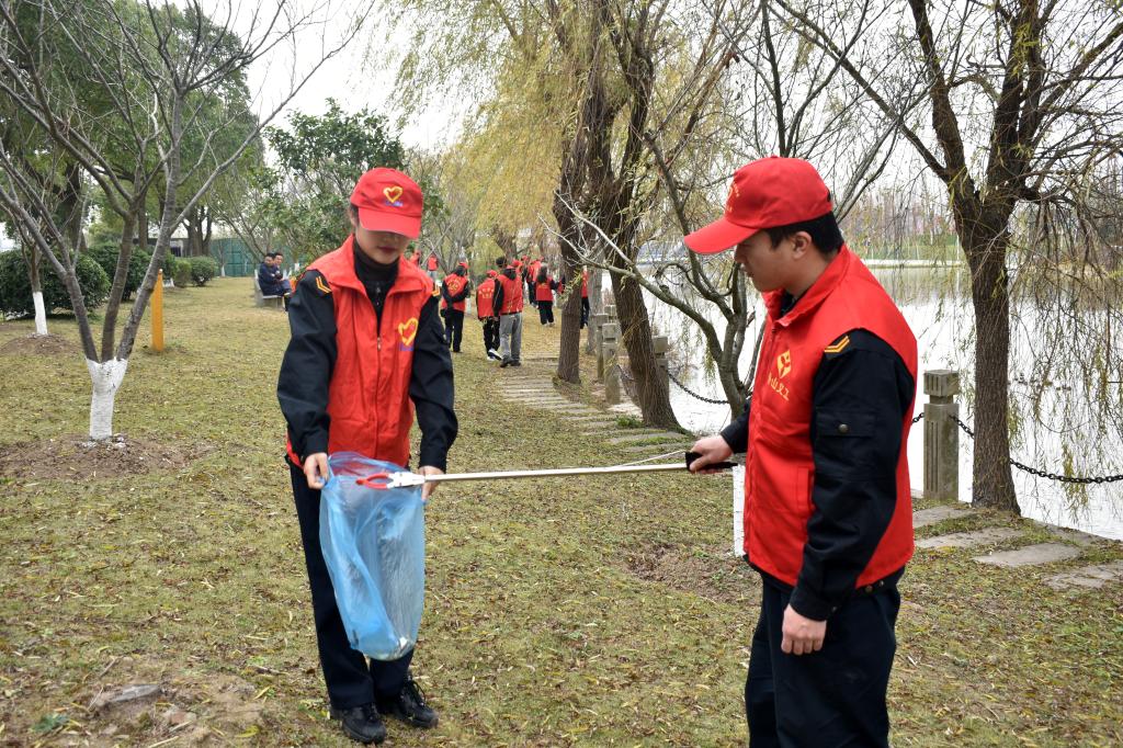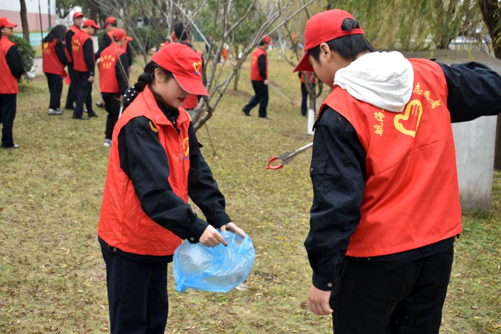 活动中,团员青年们身着红色志愿服,带上装具,沿着河畔清理校园垃圾,为校园美化献出自己的力量。小小的夹子,夹起了对文明校园的追求;单薄的垃圾袋,装载了创建文明校园的责任。活动中,成员们服从组织管理,整齐有序,精神饱满、充满干劲。