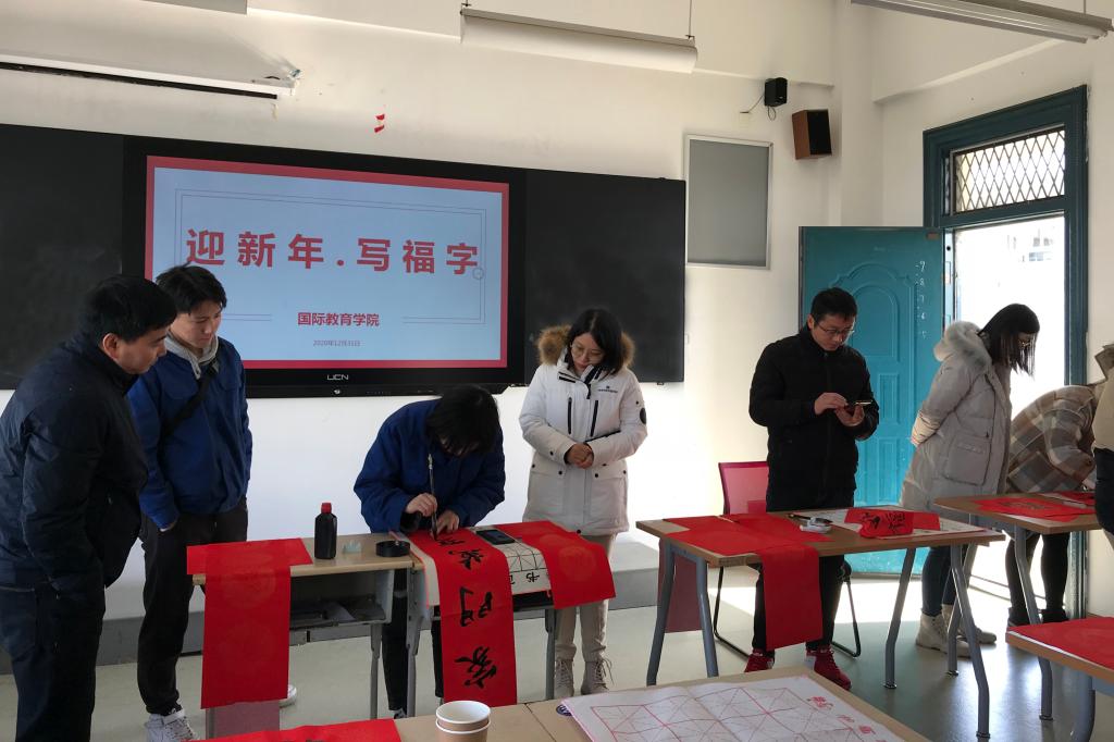 为了弘扬中华传统文化,营造欢乐、喜庆、祥和、文明的节日氛围,12月31日,国际教育学院组织师生举办了“迎新年·写福字”活动。