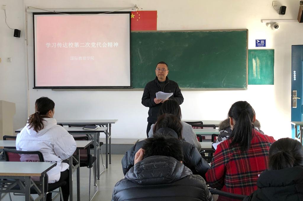 1月18日下午,国际教育学院在1406教室召开学校第二次党代会精神传达学习会,会议由国际教育学院党支部书记吴旭光主持,学院全体教师参加。