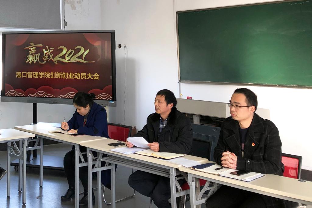 为了鼓励和动员广大教师积极参与到2021年创新创业大赛中,1月18日港口管理学院在4422教室举办了创新创业大赛动员暨经验交流会 ,旨在以赛促学、以赛促创、以赛促改。港口管理学院院长王贵斌、党总支书记苏峰、校团委副书记马露瑶以及学院创新创业爱好者参加了此次会议。