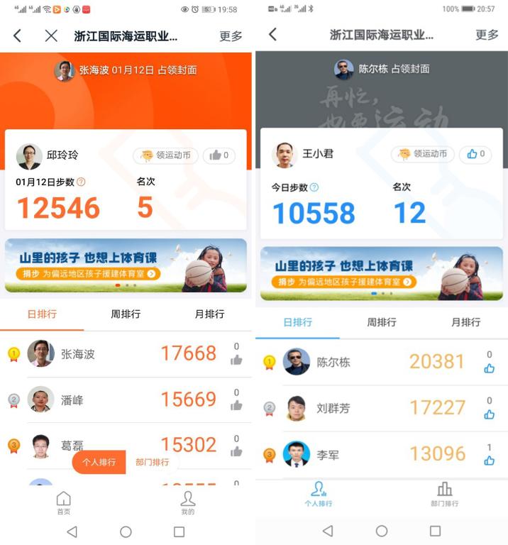 活动期间,参赛人员任选一天开通手机运动软件计步权限(微信运动、钉钉运动等),不设固定路线,实时记录当日运动步数超过一万步并上传截图,以“云中漫步”的形式完成这次特殊的健步走活动。此次活动得到了各分工会、社科体艺部的大力支持,全体工会会员热情参与,掀起了运动健身的热潮。
