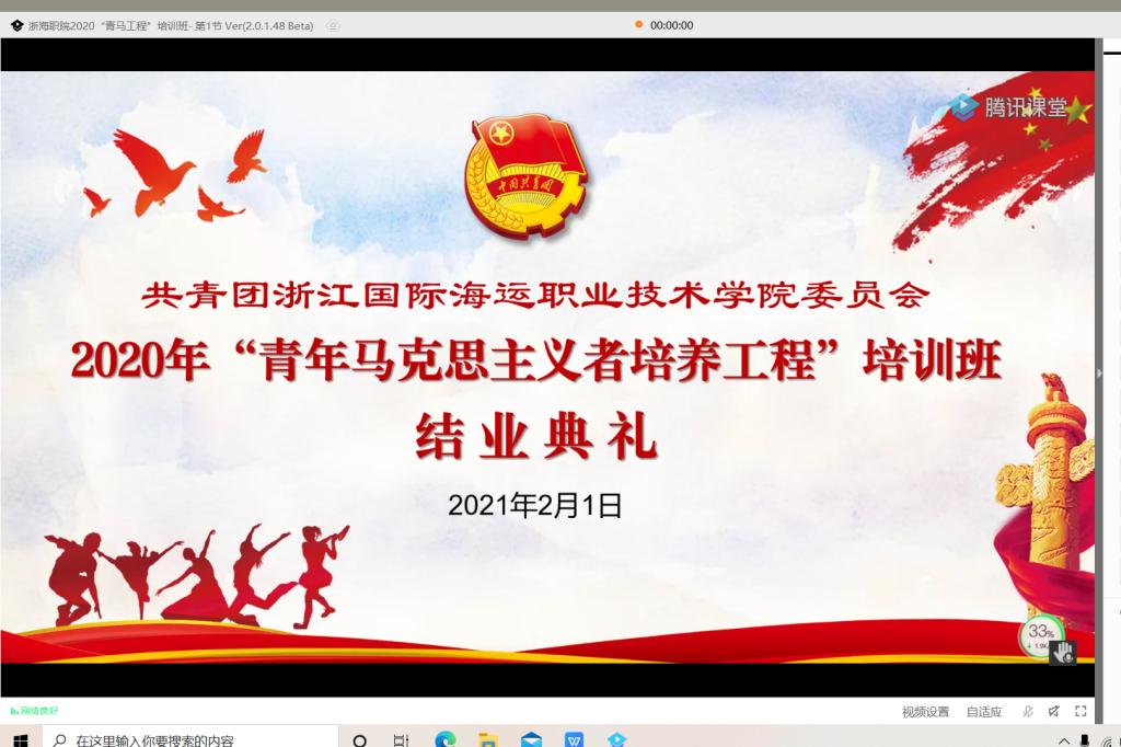 2月1日上午,学校2020年“青年马克思主义者培养工程”结业典礼以线上直播的形式顺利举行。校团委书记金洁、各二级学院分团委书记和全体学员共200余人参加了本次结业典礼。典礼由校团委副书记马露瑶主持。