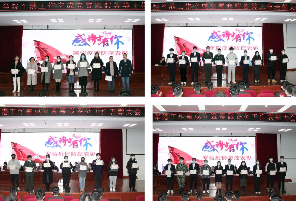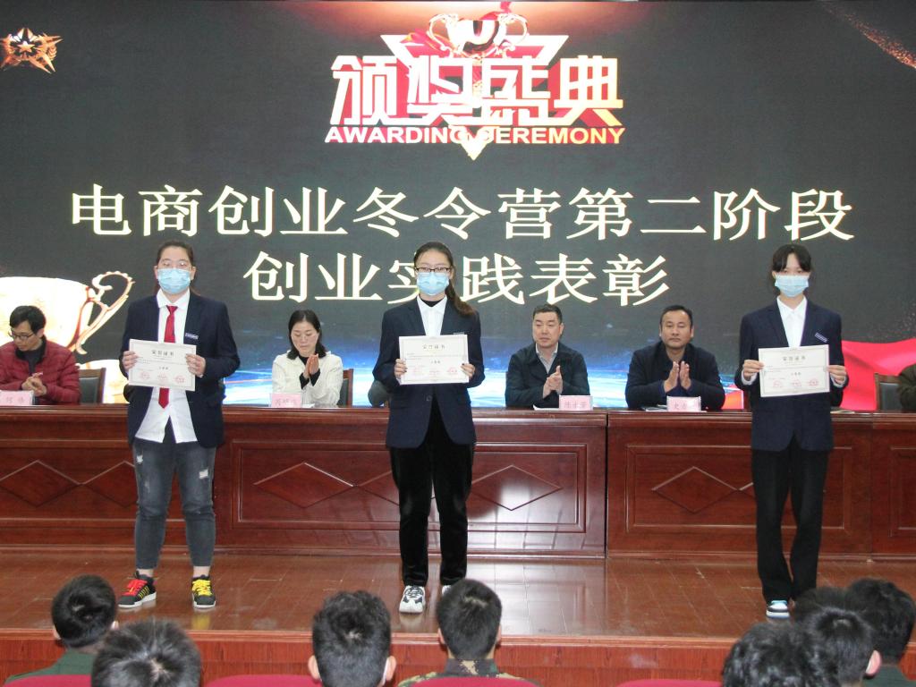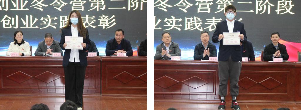 随后,傅红波宣读了《港口管理学院关于表彰寒假疫情打卡先进个人的文件》,为在寒假期间全心全意提醒同学们按时打卡的教师和同学们进行了表彰。何伟宣读了《关于2021电商创业冬令营第二阶段暨学院2021年大学生电子商务创业实战挑战赛表彰的通知》,为在电商创业冬令营实践中表现突出的同学进行了表彰,校、院领导为获奖教师和学生代表颁发了荣誉证书。
