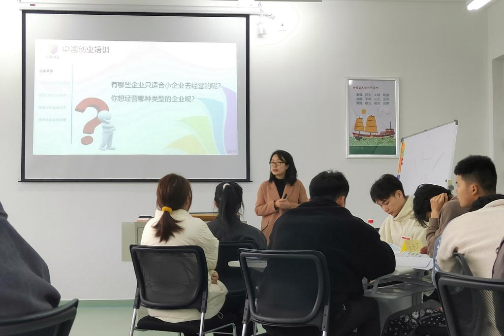 王小君副院长就SYB项目介绍及课程设置等方面与学生进行了分享,鼓励学生通过网络创业、结合本专业创业,抓住机会充实提升自我。陆婧澜老师重申了培训期间班级人员的管理要求,并与学生进行了现场介绍和互动。(创业学院)