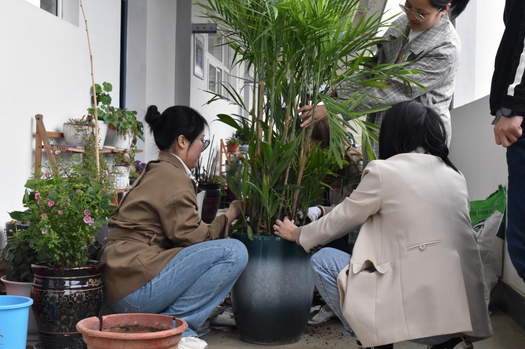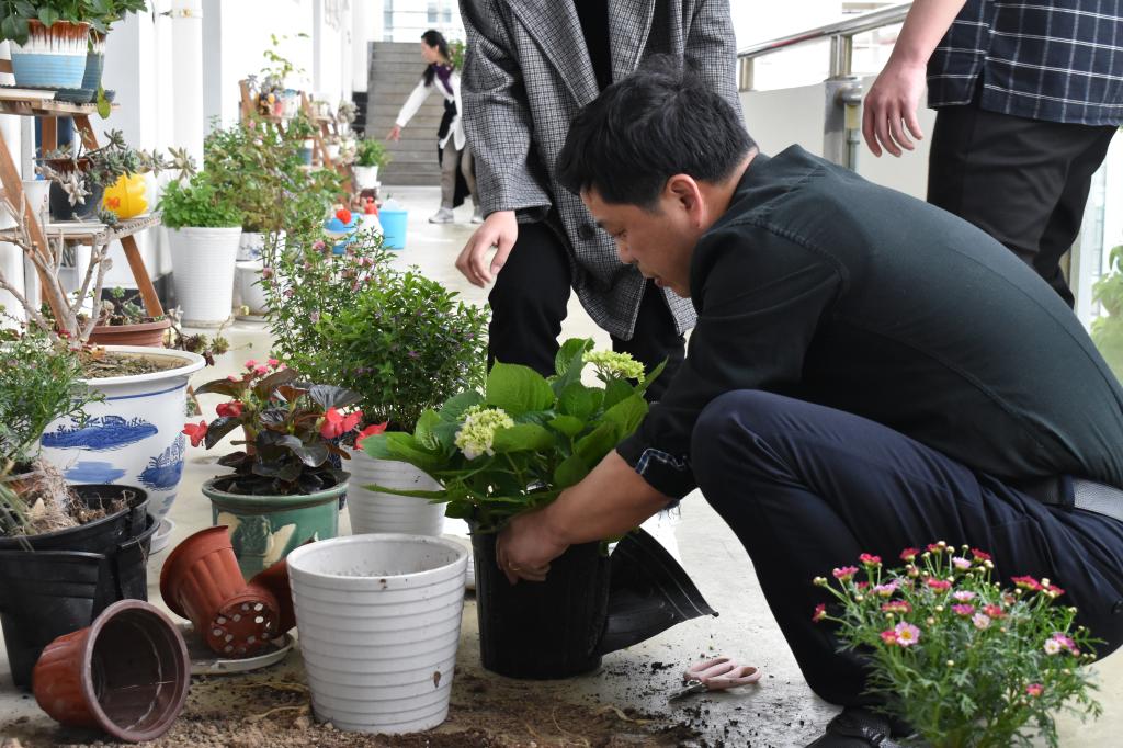 活动中,大家领取了手套、铲子和绿植,有的搬运绿植花卉,有的持铲挖土,有的扶苗填坑,有的挥铲培土,活动现场一片热火朝天,大家齐心协力,配合默契,秩序井然。经过师生的辛勤劳动,一棵棵绿植被成功栽下,一滴滴汗水化为抹抹新绿,为我们的校园增添了一道靓丽的风景线。(图文/虞程茹)