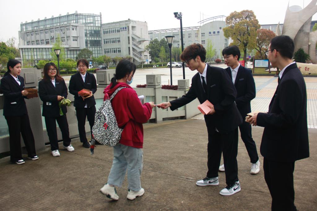4月11日上午,2021年浙江省专升本考试如约开考。港口管理学院团委学生会的同学们早早地来到学校北门,用特别的方式为即将踏上“战场”的专升本学子们加油助威。