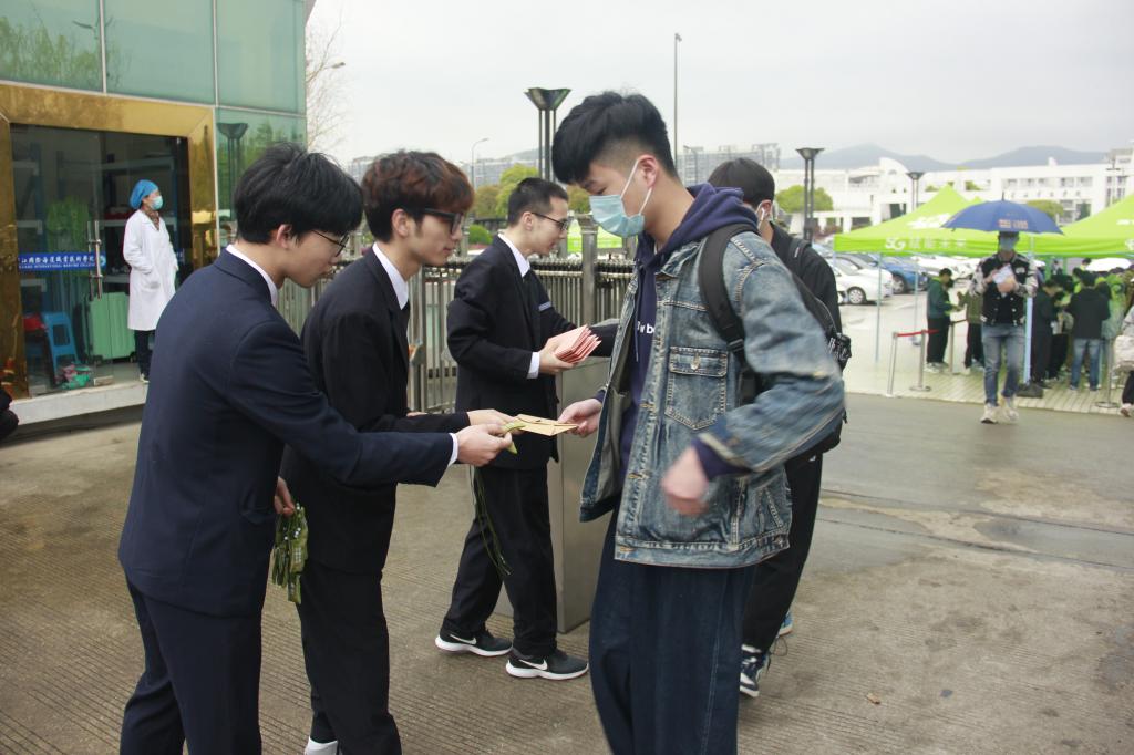 当天早上虽然飘着细雨,但现场气氛温馨和睦。参加考试的港口管理学院的考生们纷纷表示,有来自学院的温暖祝福,学弟学妹们的贴心陪伴,一定会以优异的成绩向学校报喜!(图文/余娜娜)