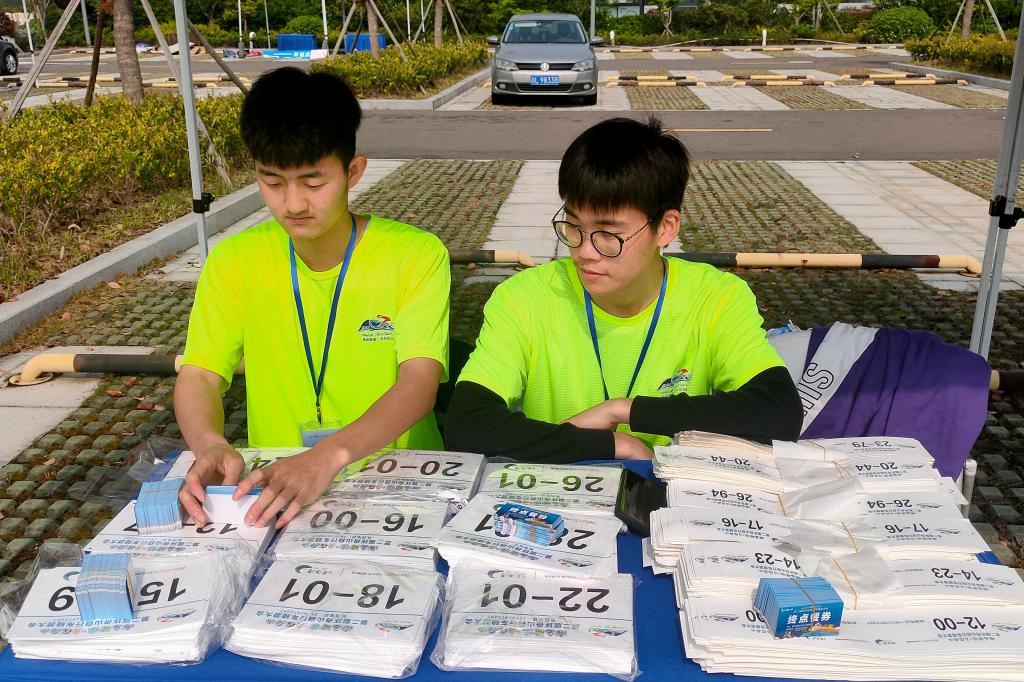 清晨6点,志愿者们就在学校集合完毕,整装待发。志愿者们分为签到、奖品发放、测温协助、选手队列协助等9个组别。物资打包、发放,道路指引,赛事签到,参赛注意事项提醒……哪里有需要,哪里就有志愿者。工作时间最长的工作组一直持续工作到晚上8点,虽然昼夜温差大,但志愿者们在冷风中依然坚守岗位。