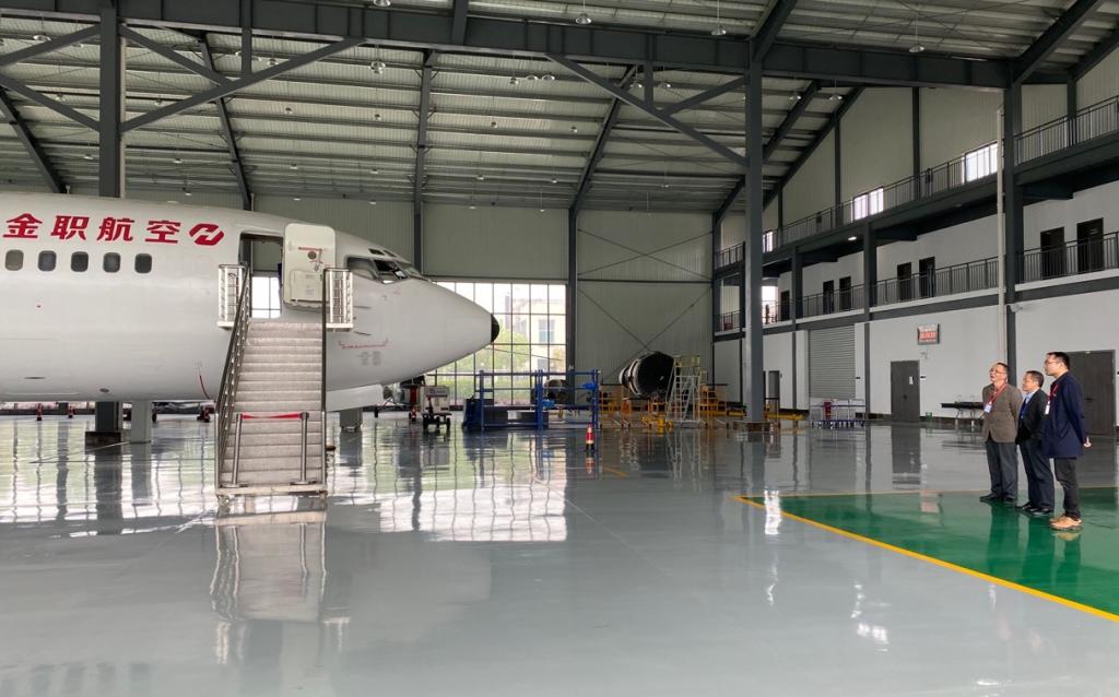 金职院航空培训中心教授盛继生、金职院飞机机电设备维修专业负责人方韶华老师热情接待并陪同参观了航空器实训机库、实训教学楼、理论教学楼。
