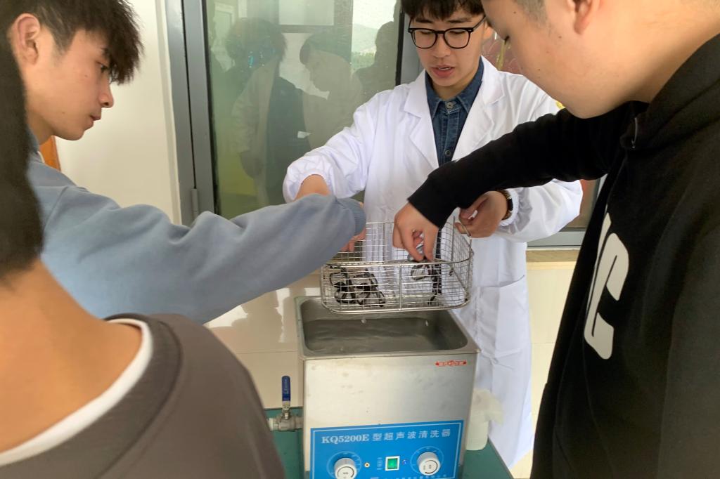 因岱山校区地处偏僻,同学们不便出校清洗眼镜,石油化工学院志愿服务队从小事出发,力所能及地为同学们做实事、办好事,利用超声波清洗机为同学们清洗眼镜、首饰等。