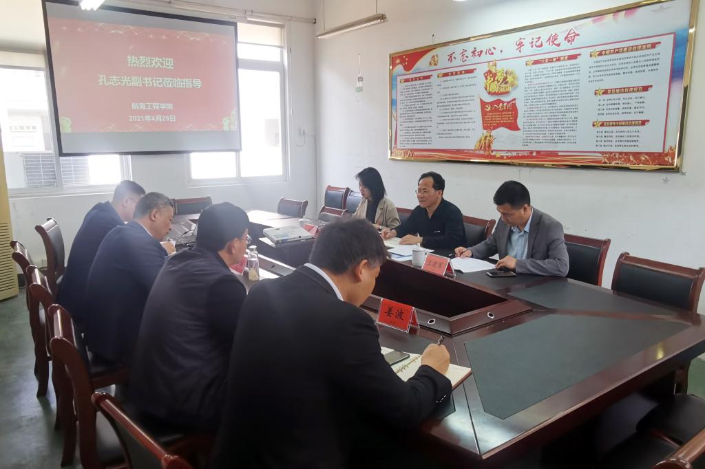 4月29日,校党委副书记孔志光带领组织部副部长王建军等人到航海工程学院开展“校领导接待日”之下基层调研活动,重点调研指导基层党建工作,并与学院领导班子成员进行了亲切座谈。