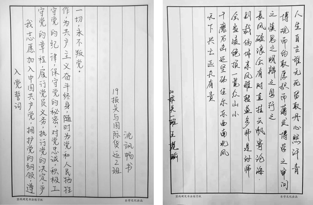 本次书法大赛内容包括入党誓词、毛泽东诗词节选和各类红色历史文学,以书法艺术歌颂党的丰功伟绩和在改革开放中取得的伟大成就。参赛师生们各显神通,用传神的手笔书写出一幅幅精美绝伦的书法作品。