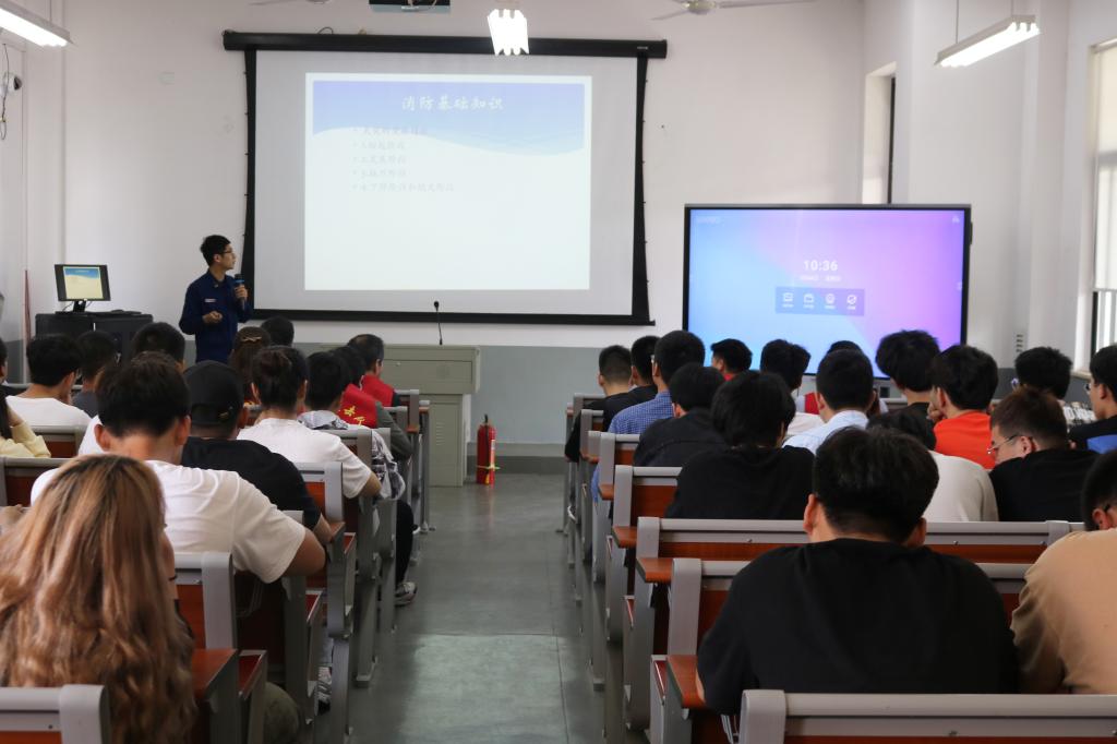 演练前,石油化工学院邀请了岱山县消防大队教官,讲解了火灾与消防常识和灭火器的基本操作方法。