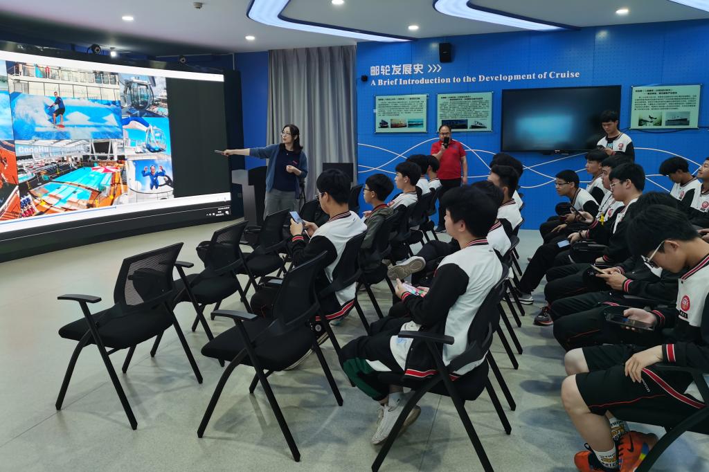 在招就办和二级学院老师的陪同下,衢州财经学校的师生们饶有兴致地参观了船舶知识馆、船舶结构模型实训室、校史馆、国际邮轮虚拟仿真实训室、航海模拟器以及机电一体化专业等相关实训室,在专业教师的讲解下,充分了解学校的教学、生活以及校园文化。