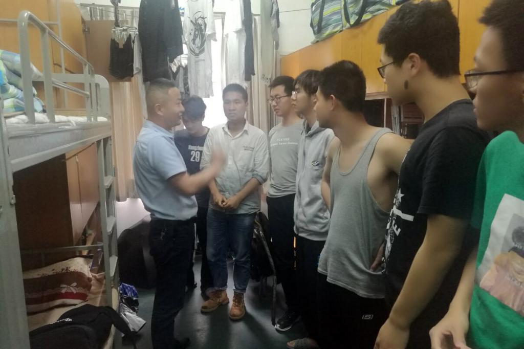 党课后,船舶工程学院全体党员教师在党总支书记罗秀峰的带领下,开展了党员助寝活动。教师们亲切询问了同学们的学习和生活情况,嘱咐同学们在疫情防控、电信诈骗等方面不要放松警惕。(图文/俞凯耀)