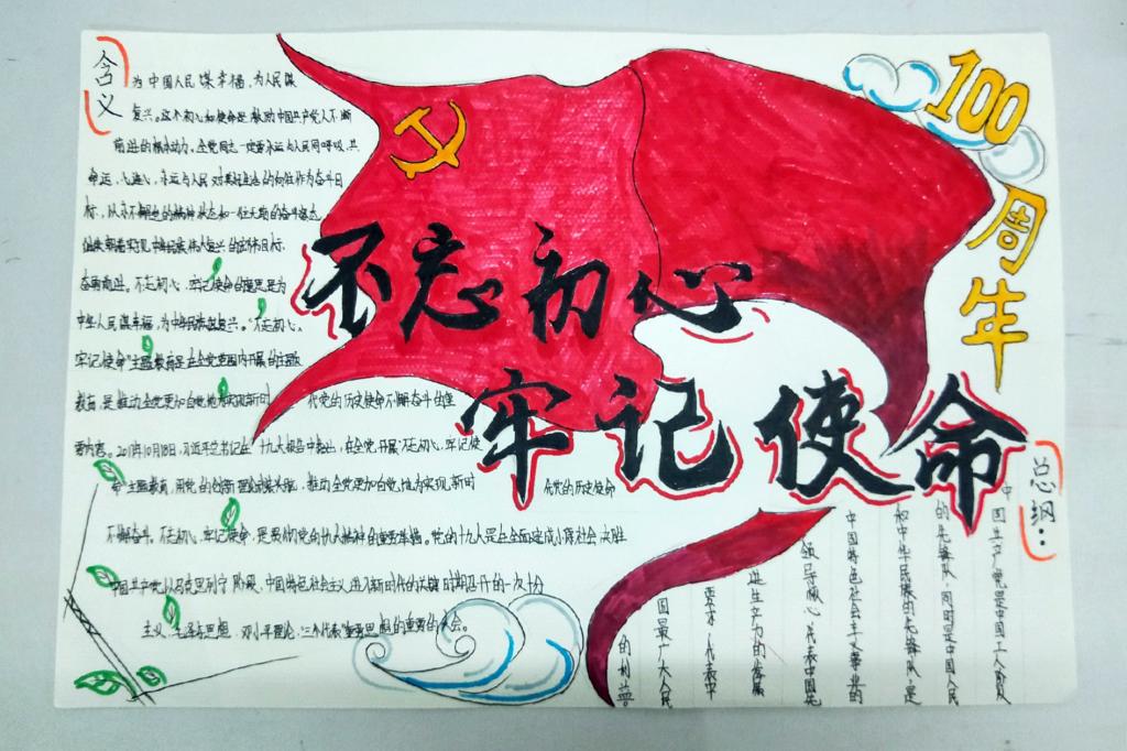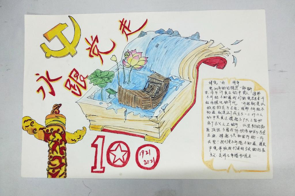 为了庆祝建党一百周年,回顾党的奋斗历史,由校学生社区和海洋旅游学院共同策划举办了红色手抄报比赛。本次活动围绕“党旗引领 共创文明”主题,共吸引了来自学院的40余名学生参与。