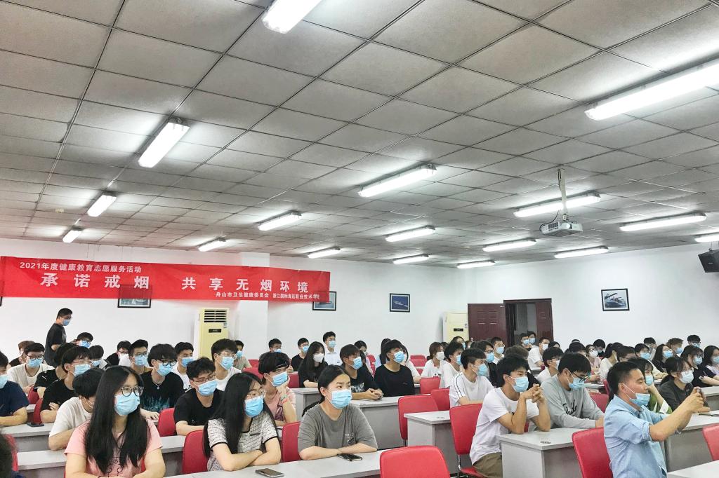 在世界无烟日到来之际,5月28日下午,国际教育学院邀请了舟山市疾病预防控制中心健康教育所所长段蒋文来校宣讲,市卫健委、爱卫办副处长谢文娟到场指导。宣讲会由国际教育学院党支部副书记颜天明主持,国际教育学院100多名师生参加。