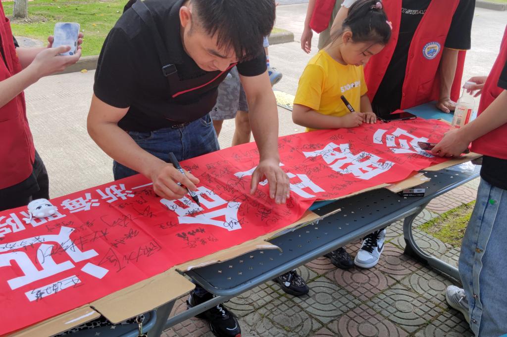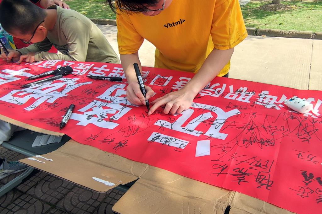 随后,志愿者们在商贸区开展了“世界无烟日签名倡议活动”。在活动现场,志愿者向同学们认真宣讲了公共场所禁烟的必要性、吸烟与肺部健康的关系、吸烟和被动吸烟对身体健康的严重危害、戒烟对健康的益处等知识,同时动员大家一起参与戒烟宣传工作,并在“珍爱生命,拒绝烟草”的横幅上郑重地签上自己的名字,形成人人参与、人人戒烟的良好氛围。