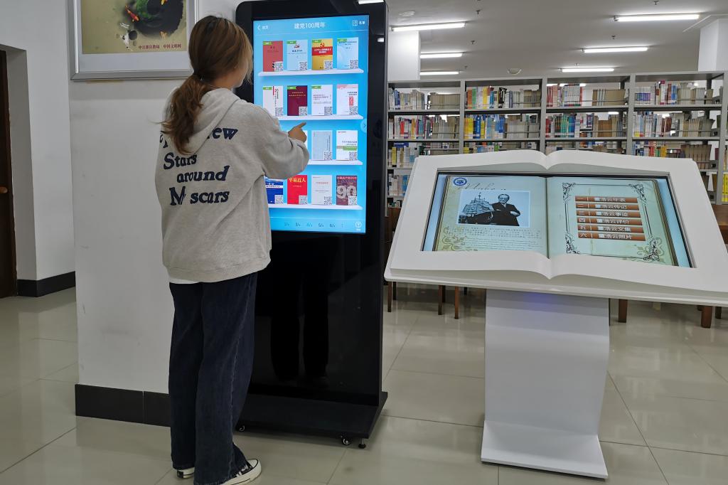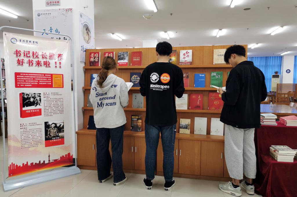 广大师生可通过现场阅读、书籍借阅、或扫码歌德阅读机上免费阅读电子图书等方式参与党史阅读。图书馆三楼的宣传橱窗新书通报栏,综合阅览室的新书架,也吸引同学们驻足翻阅,满足了同学们学习党史的需求。