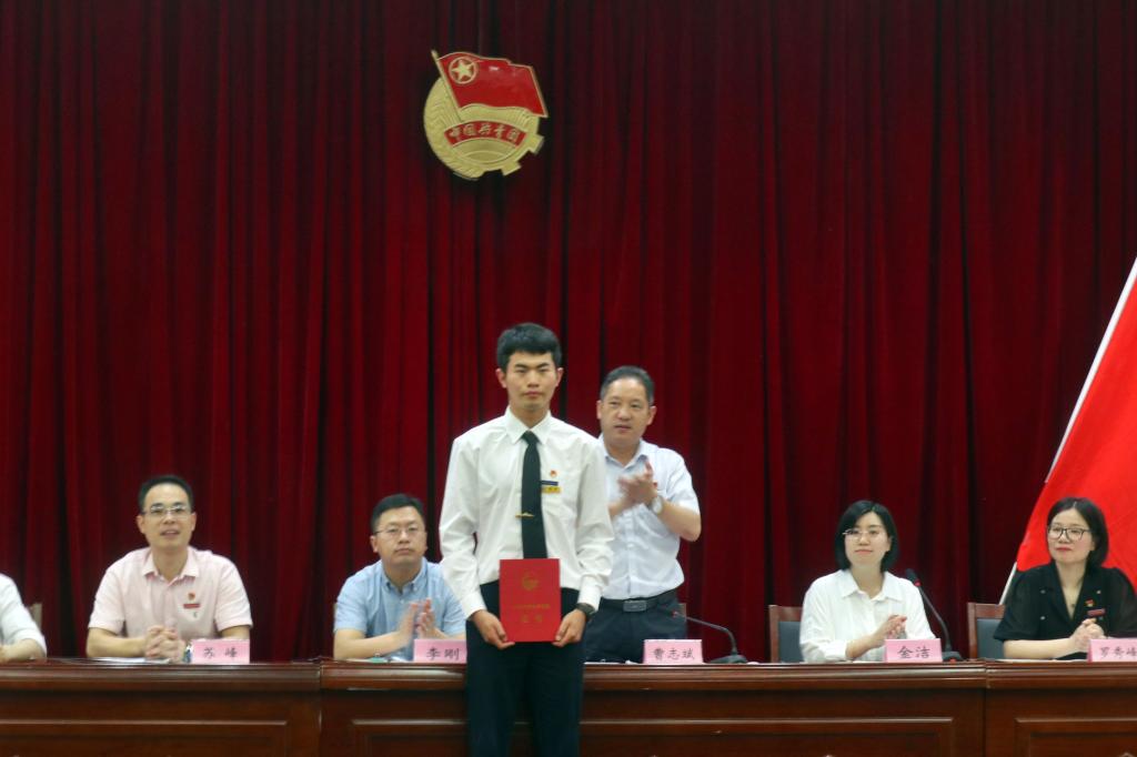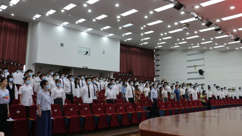 全国优秀共青团员陈宏作为学生代表发言,他分享了在校期间的学习经历和实践收获,号召团员青年们珍惜荣誉,努力拼搏,脚踏实地,奋发有为,为我校建设海洋特色鲜明的高水平职业院校贡献自己的力量,在实现“第二个百年”目标征程中展现青春风采。