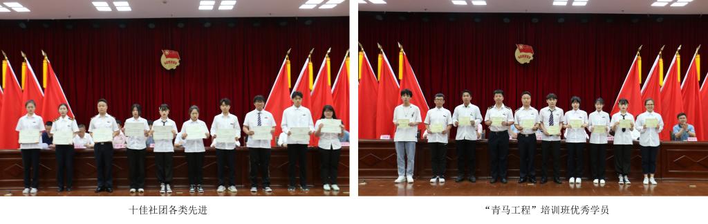 会上,校团委书记金洁宣读表彰文件,随后与会领导为全国优秀共青团员、中国大学生自强之星、校优秀团干、校优秀团员、校优秀志愿者、校优秀社团干部、校优秀社团积极分子、校优秀社团指导老师、“青马工程”优秀学员等荣誉获得个人,省优秀团支部、校先进团组织、校十佳社团等荣誉获得集体,以及在省大学生课外科技作品竞赛、省大学生科技创新大赛、省暑期社会实践风采大赛等活动中获奖的团队颁发奖项。表彰大会共颁发个人先进奖项175人次,集体先进奖项42项。