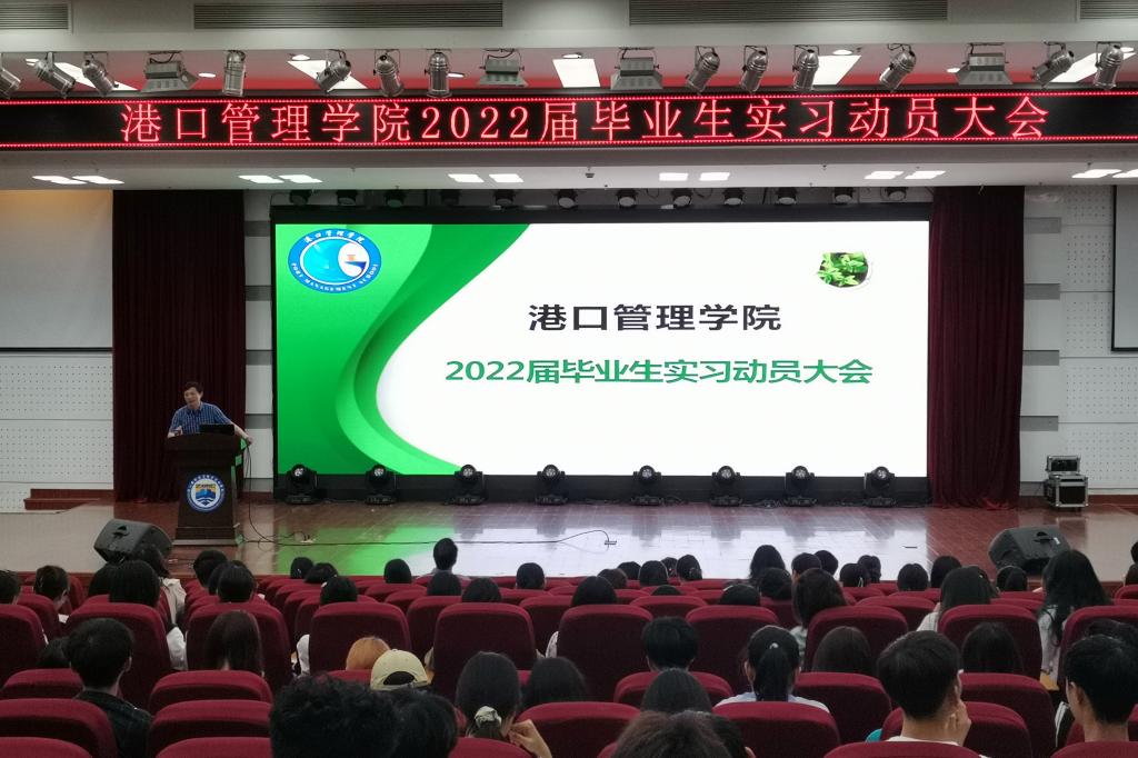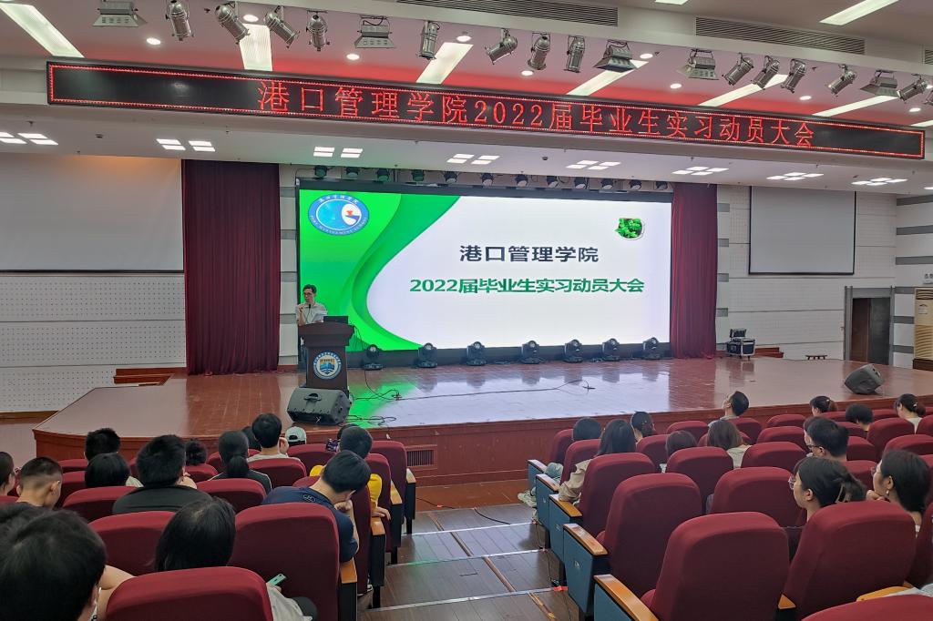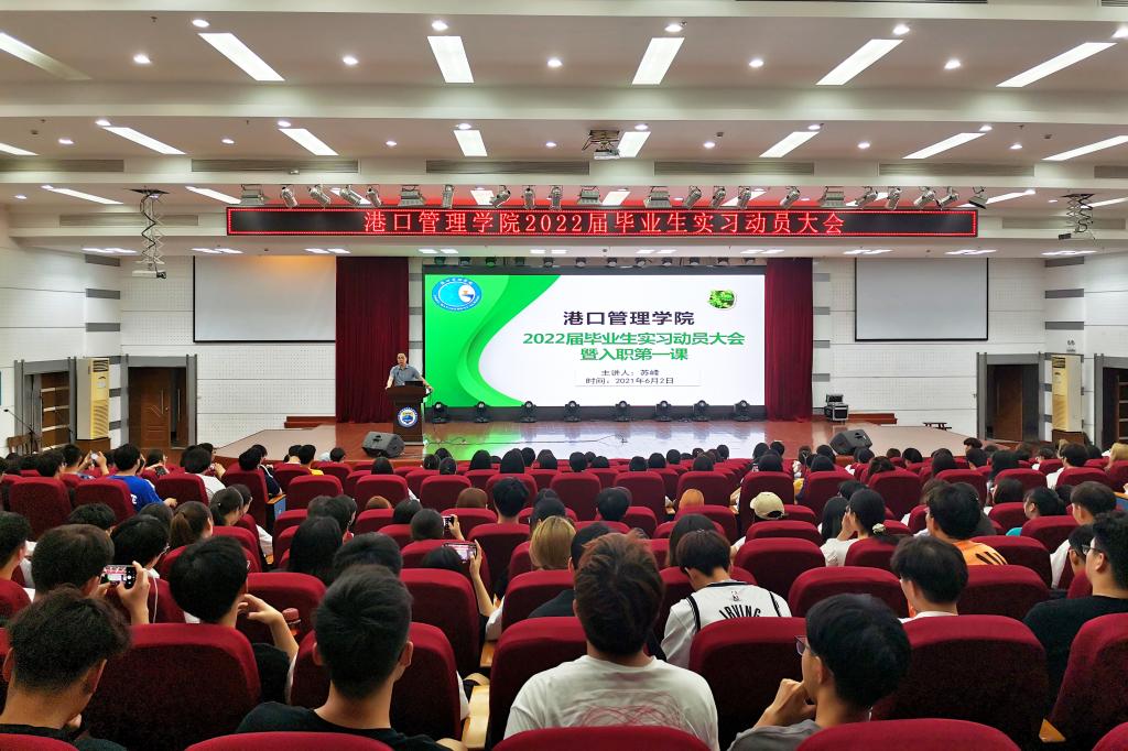 6月2日,港口管理学院在图书馆四楼报告厅召开了2022届毕业生实习动员大会。港口管理学院行政班子、专业团队负责人、辅导员及全体2022届毕业生参加了大会。港口管理学院党总支书记苏峰、院长王贵斌、副院长何伟在会上进行了动员讲话。