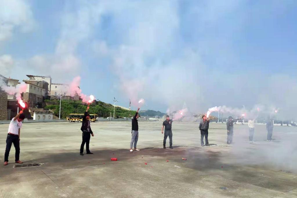 依托培训契机,黄龙乡开展了“2021年渔业安全演练暨渔民渔民技能大比武”活动,比武科目包括三角巾包扎、心肺复苏、消防救援、释放烟雾信号弹、释放火箭降落伞信号、释放救生筏等,选手们发挥出色,将培训中学到的技能进行了全面展示。
