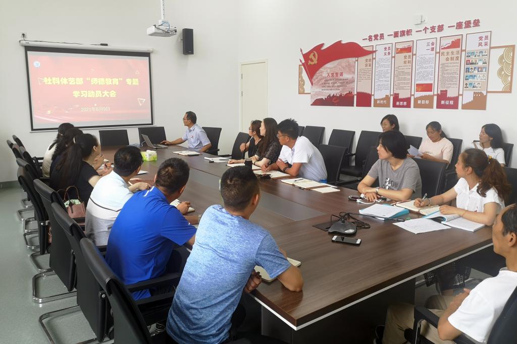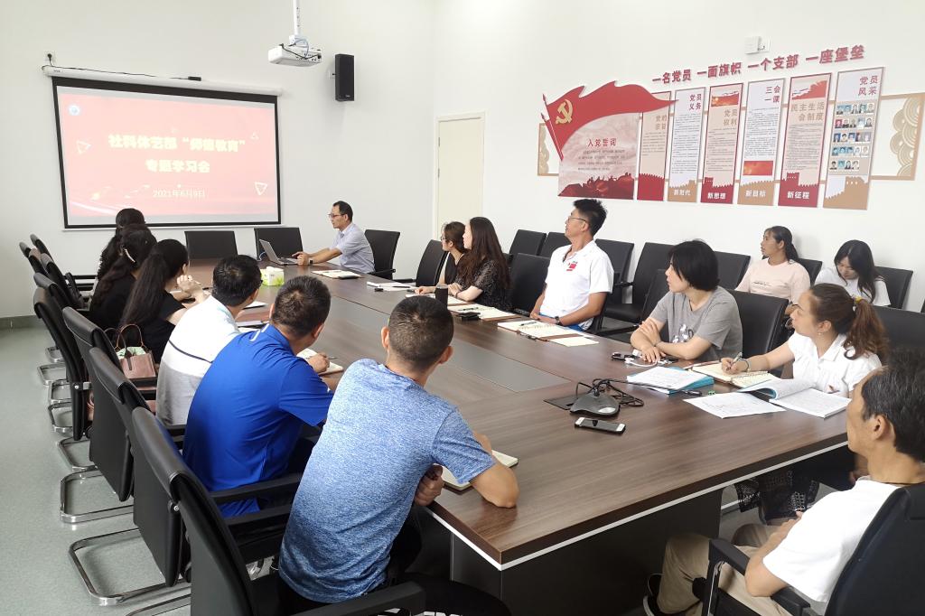 会上,社科体艺部党总支书记张海波带领全体教师学习了教育部、省教育厅等师德师风专题教育文件精神以及学校相关文件制度,让全体教师认识到新形势下,加强师德师风建设工作的重要性、紧迫性和必要性。
