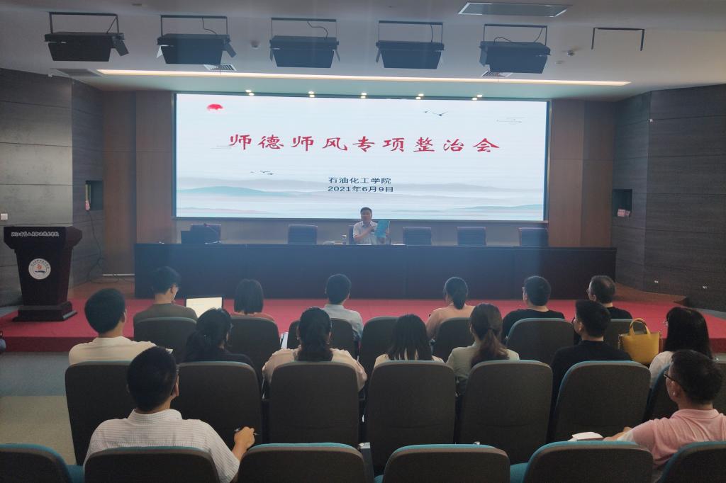 6月9日,石油化工学院在岱山校区报告厅召开了师德师风专项整治会,学院全体教职工参加会议。会议由石油化工学院党支部书记郑忠义主持。