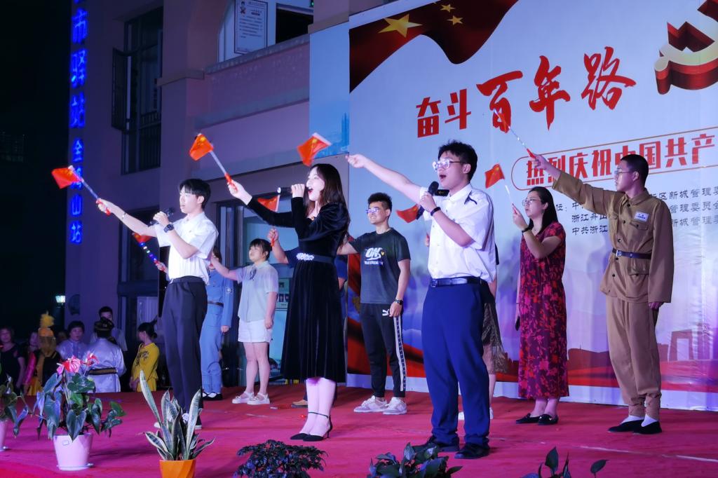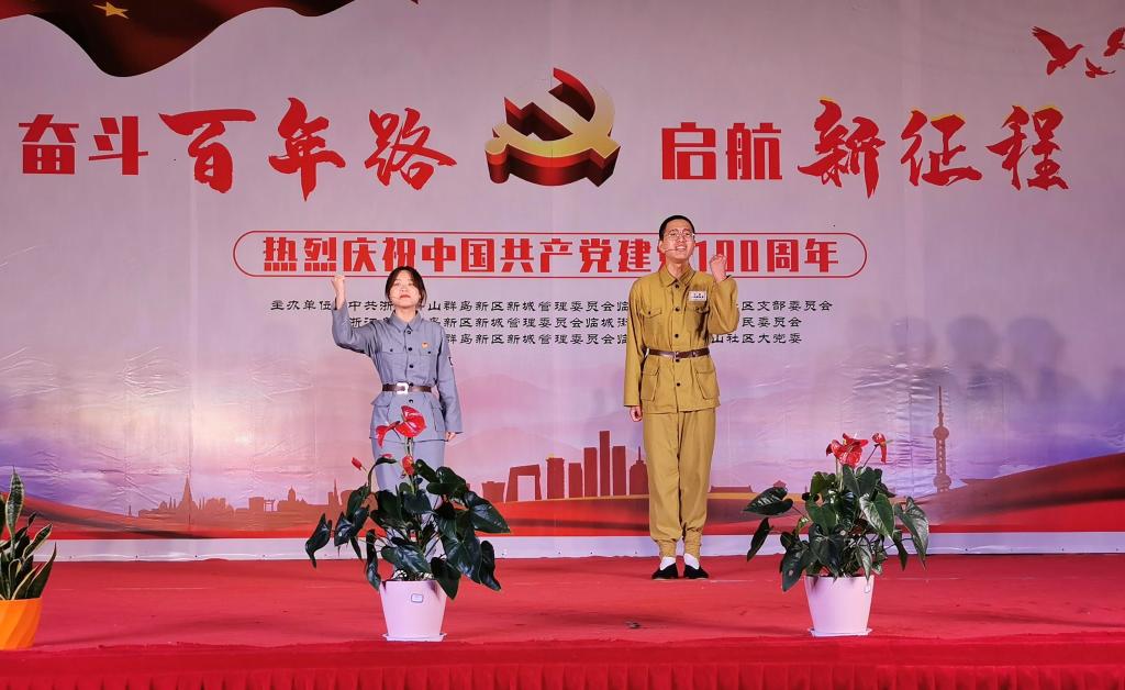 学校党委组织部和校团委积极协助金鸡山社区大党委举办了“奋斗百年路、启航新征程”庆祝中国共产党建党100周年文艺晚会,组织带领师生深入社区为社区居民献上精彩纷呈的节目,得到了社区和群众的认可和欢迎。我校学生志愿者表演的红色情景剧《永不消逝的声音》更是将整场晚会推向高潮,赢得了现场群众的阵阵掌声。晚会的最后,学生志愿者带领台下观众齐唱《歌唱祖国》和《没有共产党就没有新中国》,以信仰之声歌颂党的光辉历程,以实际行动感念党的丰功伟绩,深入推进“我为群众办实事”落地见效。