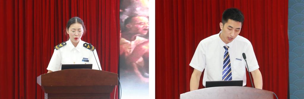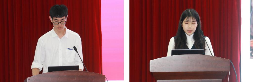 讲座的第二阶段,来自各二级学院的五位学生代表结合团队“重走红色之路 寻访历史记忆”调研成果,从不同视角阐述了中国共产党100年来的奋斗历程,真诚向建党百年献上祝福,并许下“为中华之崛起而读书”的庄严承诺,体现了新时代大学生的历史责任感。最后经现场的200名学生代表线上投票,海洋旅游学院2019级国际邮轮乘务领队1班丁杉杉同学的《致敬抗战老兵,发展红色旅游调研汇报》以最高票获得第一名。