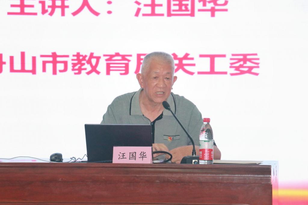 讲座的第一阶段,舟山市关工委、舟山市教育局关工委红色宣讲团的汪国华、胡亦男老师分别为师生们作了《永远的十六岁—张淑馨烈士的故事》、《抗日战争在舟山》主题宣讲,两位老师结合自身和舟山革命历史实际,通过一个个短小精炼的故事,让师生们对舟山革命史有了更加深入的了解。
