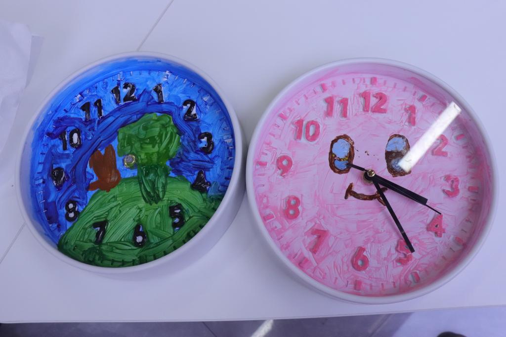 活动现场,同学们在轻松愉悦的氛围中拿起画笔,将天马行空的想象倾注于空白时钟与麻布包上。有的用明快色调绘制抽象图案,表达内心的活力;有的以细腻笔触勾勒自然景物,传递宁静与治愈;还有的同学通过大胆的撞色和线条,释放积压的情绪。参与活动的同学表示:“平时课业繁忙,很少有机会静下心来画画。这次活动让我完全沉浸在创作里,画完感觉整个人轻松了许多,好像重新认识了自己。”