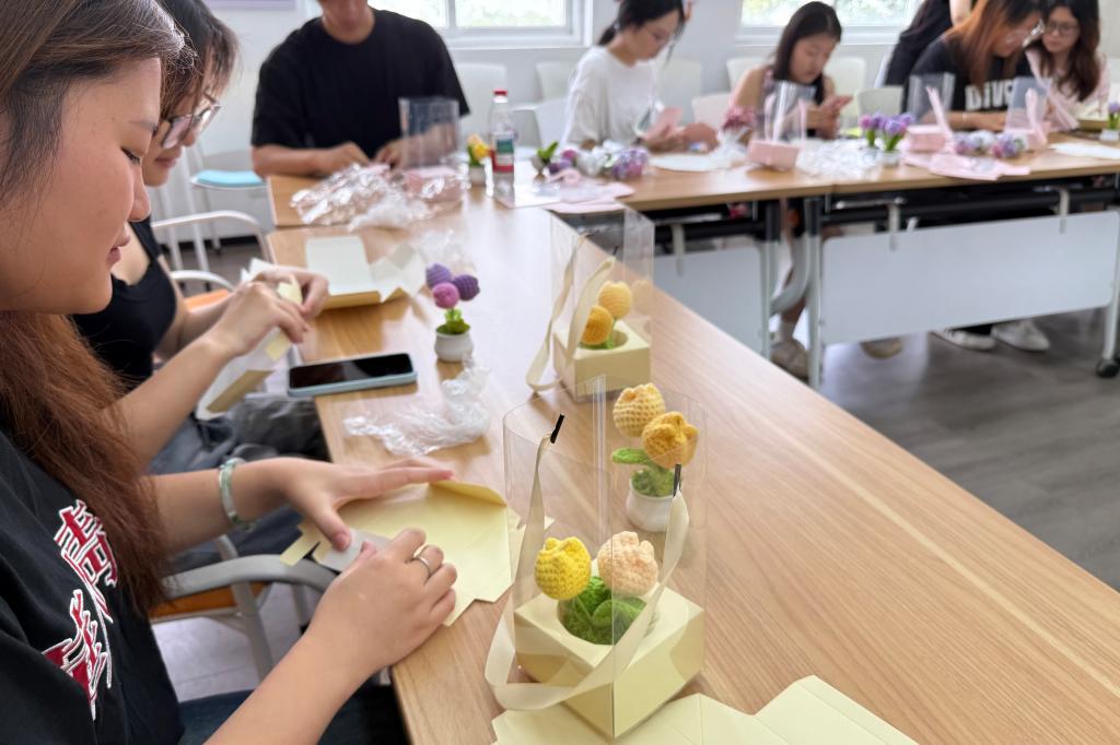 在第41个教师节来临之际,海洋旅游学院精心策划“指尖传情,致谢师恩”主题活动,组织学生通过制作手工花艺,向辛勤耕耘的老师们送上专属节日祝福。 活动现场,学生们对照手工教程认真搭配,细心制作,将对老师的感恩之情融入每一道工序,一朵朵形态逼真的手工花被装进精美的盒子中,承载着学子们最真挚的心意。