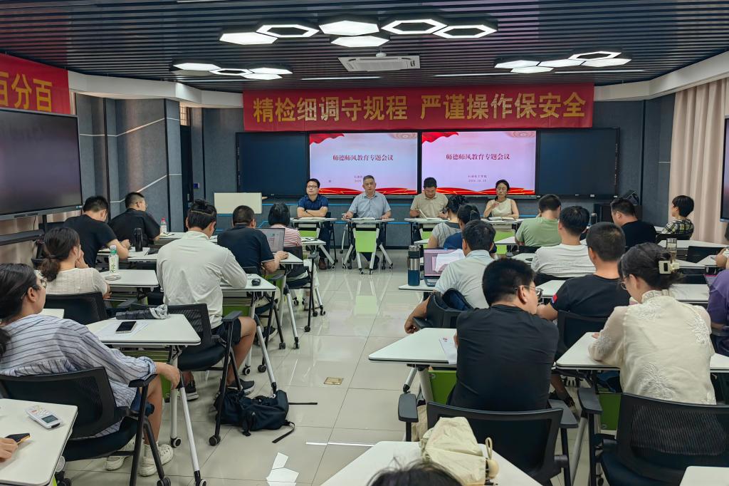 为进一步加强学院师德师风建设,提升教师师德师风水平,10月15日,石油化工学院在实训楼智慧教室召开师德师风专题学习会议,学院全体教职工参加会议。