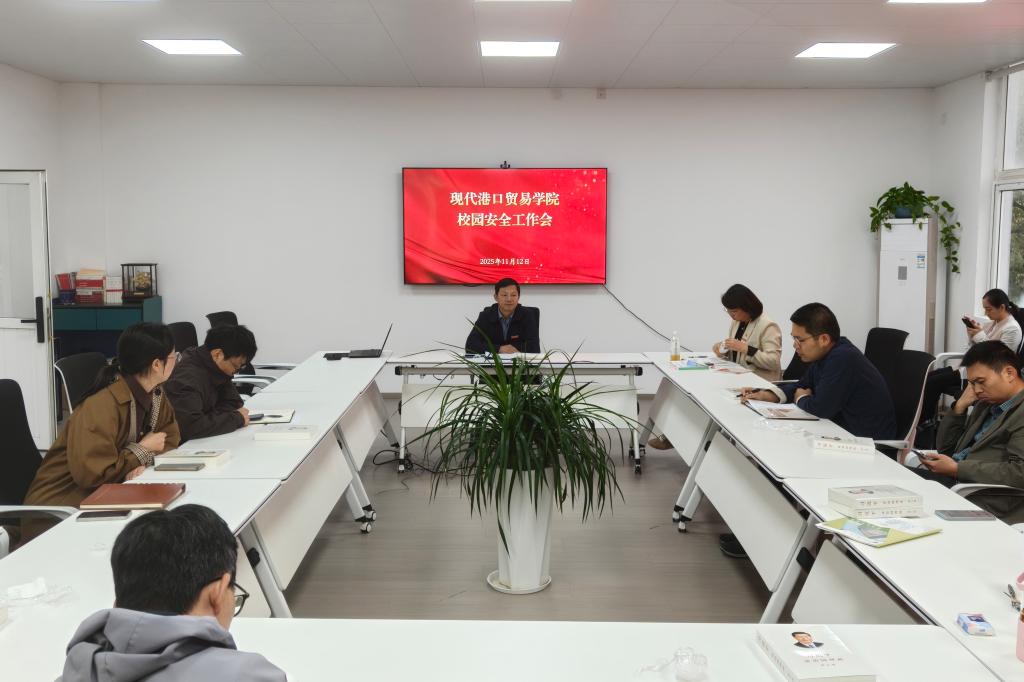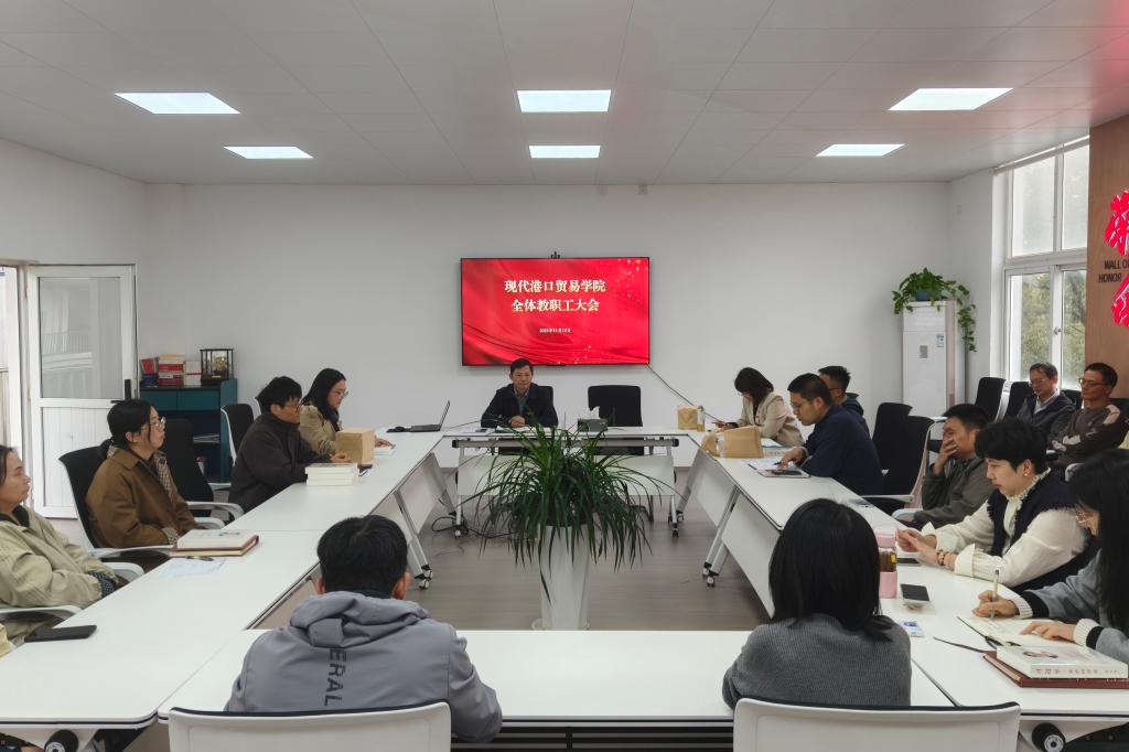 11月12日,现代港口贸易学院在海德楼4304党员活动室召开全体教职工大会,学院全体教职工参加会议。会议由学院院长王贵斌主持。
