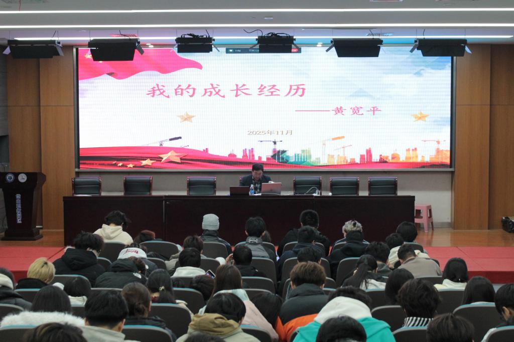 黄宽平在讲座中,以个人从普通工人到技术专家的成长历程开篇,娓娓道来。他勉励同学们珍惜在校时光,勤学专业知识,并强调了持续学习与实践的至关重要性。随后,他深入诠释了敬业奉献、创新进取、团结协作的劳模精神,更辅以亲身经历的生动案例,阐述如何在此精神指引下攻坚克难、获得成功。他的分享朴实而深刻,没有枯燥的理论灌输,只有一位前辈接地气、有温度的倾心分享,深深打动了在场的每一位听众。