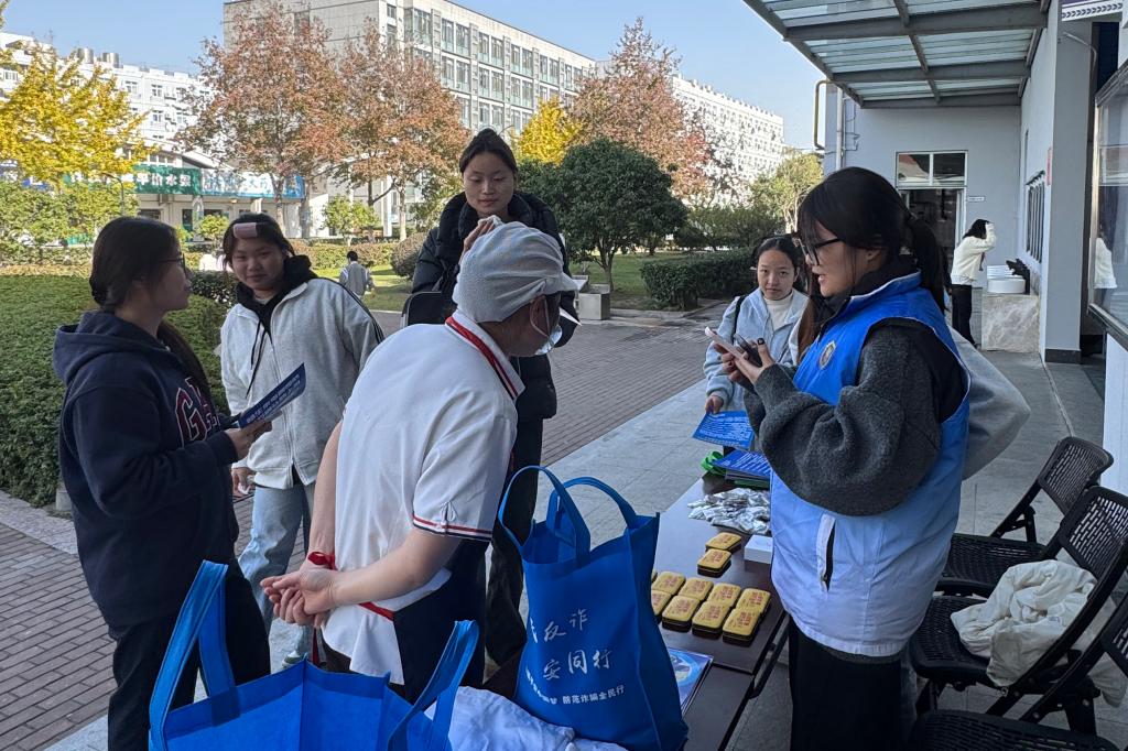 当前,正值我校全面推进创建“5A等级平安校园”之际,我校反诈形势总体向好之时,为避免同学们思想松懈,联盟队员利用休息时间,在学生食堂门口设摊置点,组织了一场反诈有奖问答活动。