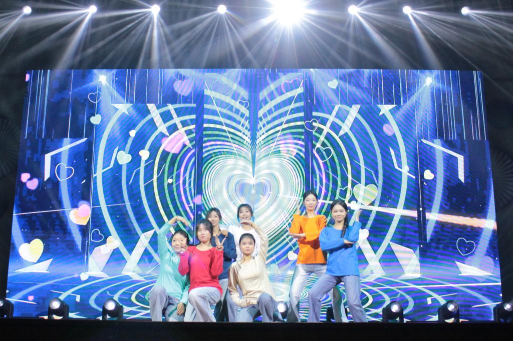 第二篇章“逐梦征程”中,音悦社的《我们的明天》唱出青春憧憬;舞蹈《凑热闹》节奏明快、气氛热烈;歌舞串烧《Whiplash+No Doubt》活力全开,彰显多元艺术风格;学校舞蹈团的《爱》则以柔美舞姿传递温暖力量。