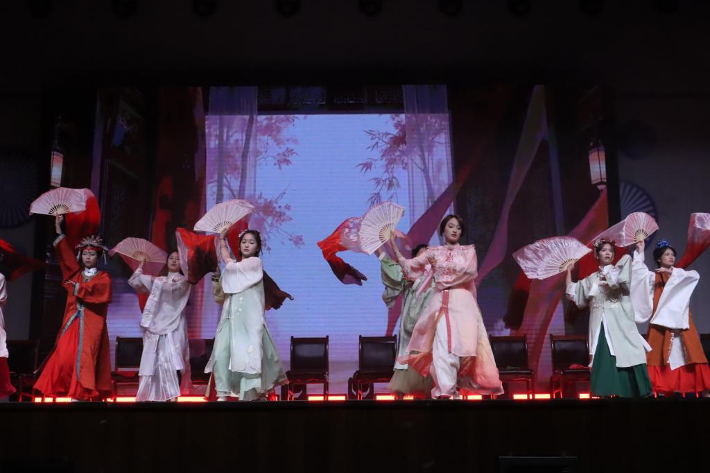 进入第三篇章“韵启华章”,龙吟虎啸队的《跆拳道综合表演》刚劲有力,展现力与美的融合;话剧社《怒吼》以情景剧形式传递时代强音;舞蹈《如愿》意境深远,舞出对未来的美好期许。晚会尾声,教师团队惊喜演绎舞蹈《你要跳舞吗》,轻松活泼的表演拉近了师生距离,赢得阵阵掌声。