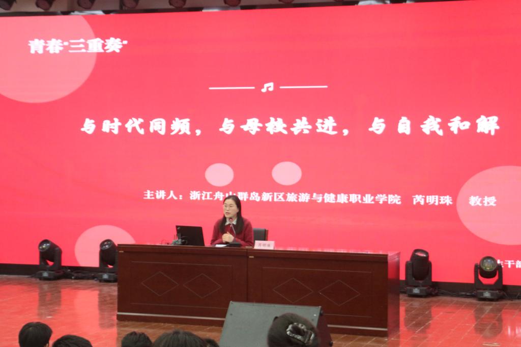 仪式结束后,新区旅游与健康学院组织部部长芮明珠为学员们带来了《“青春”三重奏:与时代同频,与母校共进,与自我和解》专题讲座。她以爱国的家国情怀、爱校的归属深情、爱自己的成长力量为主线,让同学们重新思考了“青春”二字的分量。