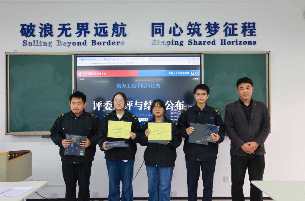 辩论赛决赛落幕后,学院党总支副书记姜波为冠亚军队伍颁奖并送上祝福,充分肯定了辩手们的表现,希望同学们将辩论中的批判性思维和探索精神运用到专业学习中,为航海事业贡献青春力量。此次辩论赛不仅提升了学生的语言表达与逻辑思维能力,更通过聚焦现实议题,引导学生深入思考教育评价与人才发展的关系,强化了学院“以辩促学、以学促行”的育人氛围。(图文/徐思思)