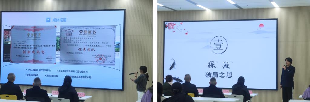 展示现场,各团队通过PPT演示、视频展播、情景再现等多元形式,生动讲述实践故事。最终,海洋旅游学院文润海乡——跟随文化特派员“寻宝”马岙实践团、校团委“探绿循迹”实践团、国际教育学院大黄杨尖研学规划暑期社会实践先锋队斩获一等奖。石油化工学院应急救护知识科普暑期实践团等4支团队荣获二等奖;现代港口贸易学院蓝海遗韵:乡村振兴视域下舟山非遗研学实践团等6支团队荣获三等奖;此外,国际教育学院组织有力、成效显著,被授予优秀组织奖。