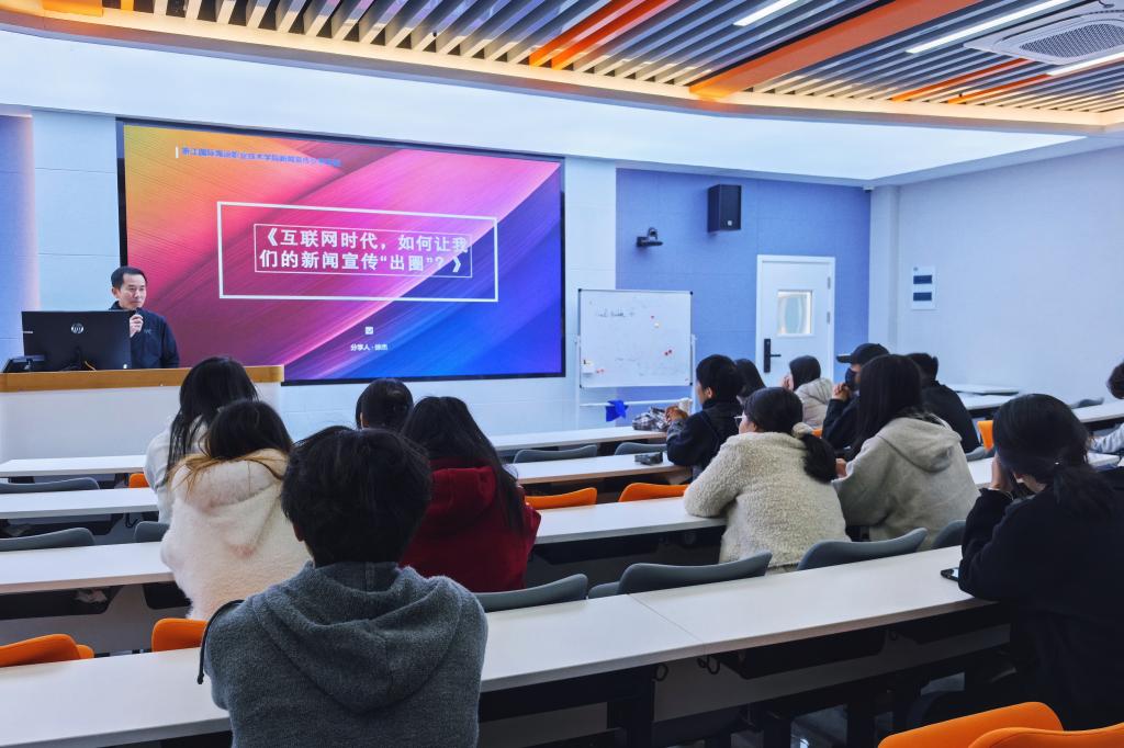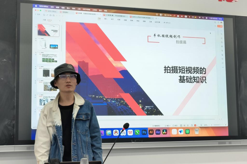 第二期,中国影视剪辑学会会员、浙江海洋大学外聘新媒体教师王望园带领大家“玩转短视频”,现场演示了如何借助AI工具实现智能剪辑、自动字幕与特效生成,显著降低了创意制作的门槛,让动态宣传更灵动、更高效。