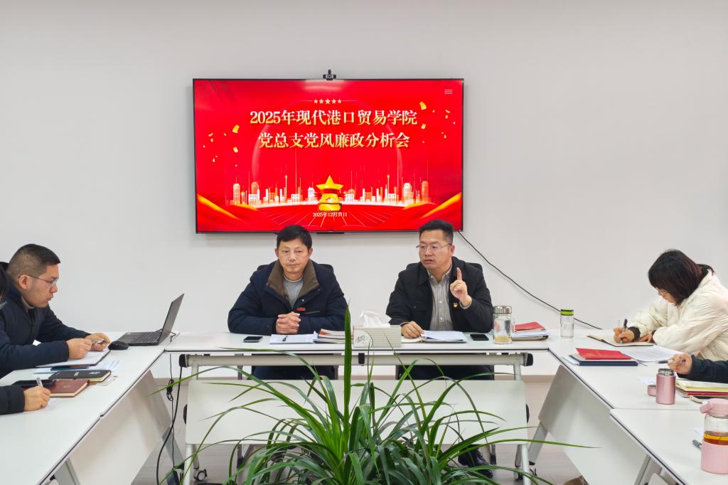 为深入贯彻全面从严治党要求,扎实推进党风廉政建设工作,12月31日,现代港口贸易学院党总支在海德楼4304党员活动室召开2025年度党风廉政建设分析会。学院党政班子成员参会,会议由党总支书记李刚主持。