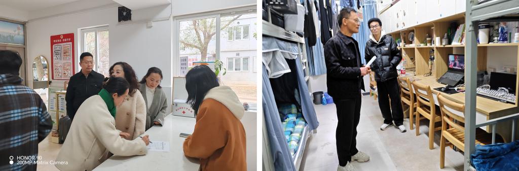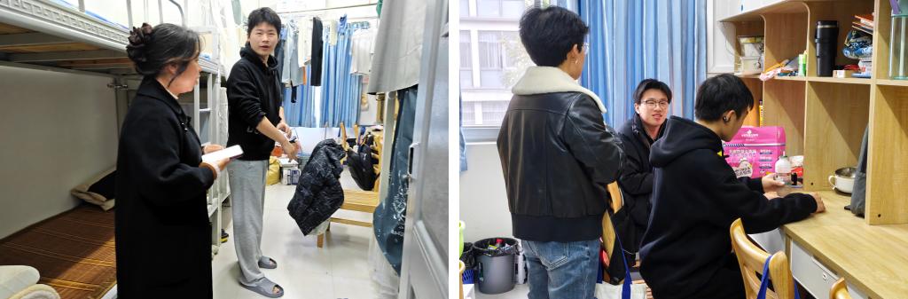 会议结束后,学院组织全体教职工开展“进寝室、查隐患、送温暖”走访活动。走访中,教职工与学生亲切交流,详细询问其假期出行计划、留校安排及生活情况,同时重点对寝室用电安全、消防安全等开展全面排查,对发现的隐患及时提醒学生整改。针对留校学生,教职工特意叮嘱其严守校园管理规定,注意假期寝室安全,保持通讯畅通,遇有问题第一时间向辅导员或学院反映。